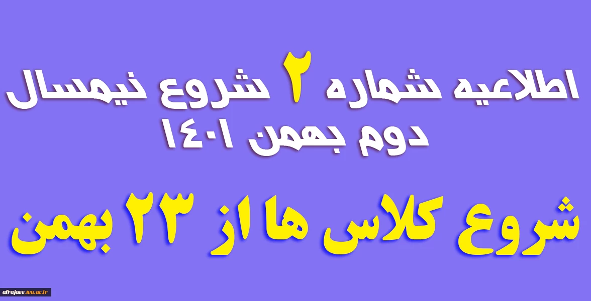 اطلاعیه شماره 2-شروع کلاس های نیمسال دوم 2