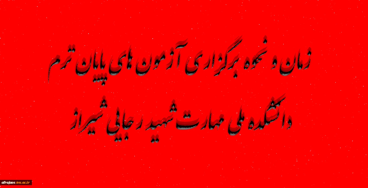 امتیاز دهید : زمان و نحوه برگزاری آزمون های پایان ترم دانشکده ملی مهارت شهید رجایی شیراز 2 چهارشنبه 1 بهمن 1404 ساعت 14:04